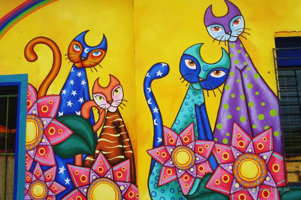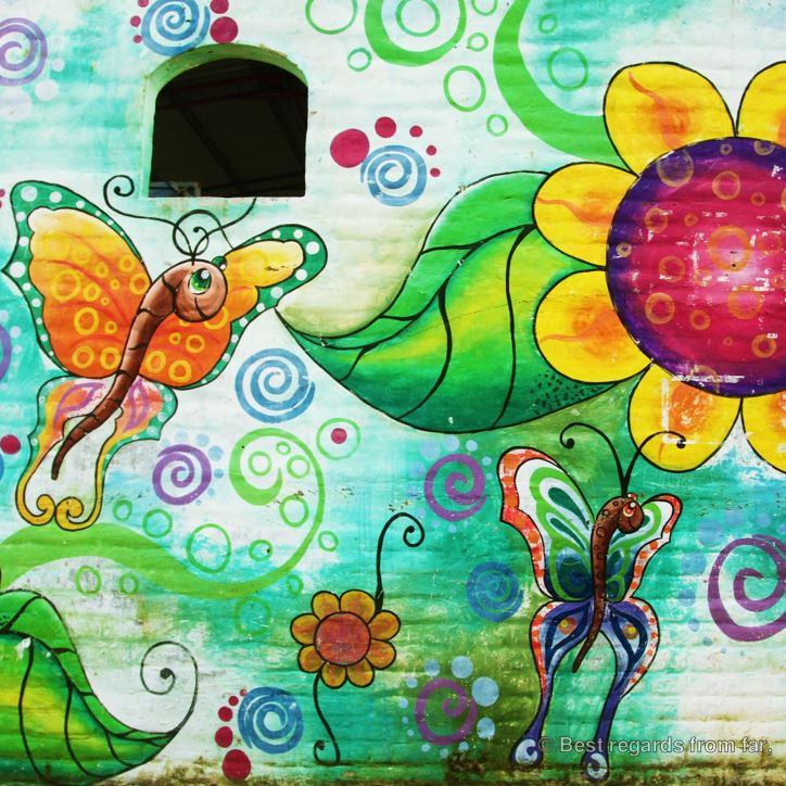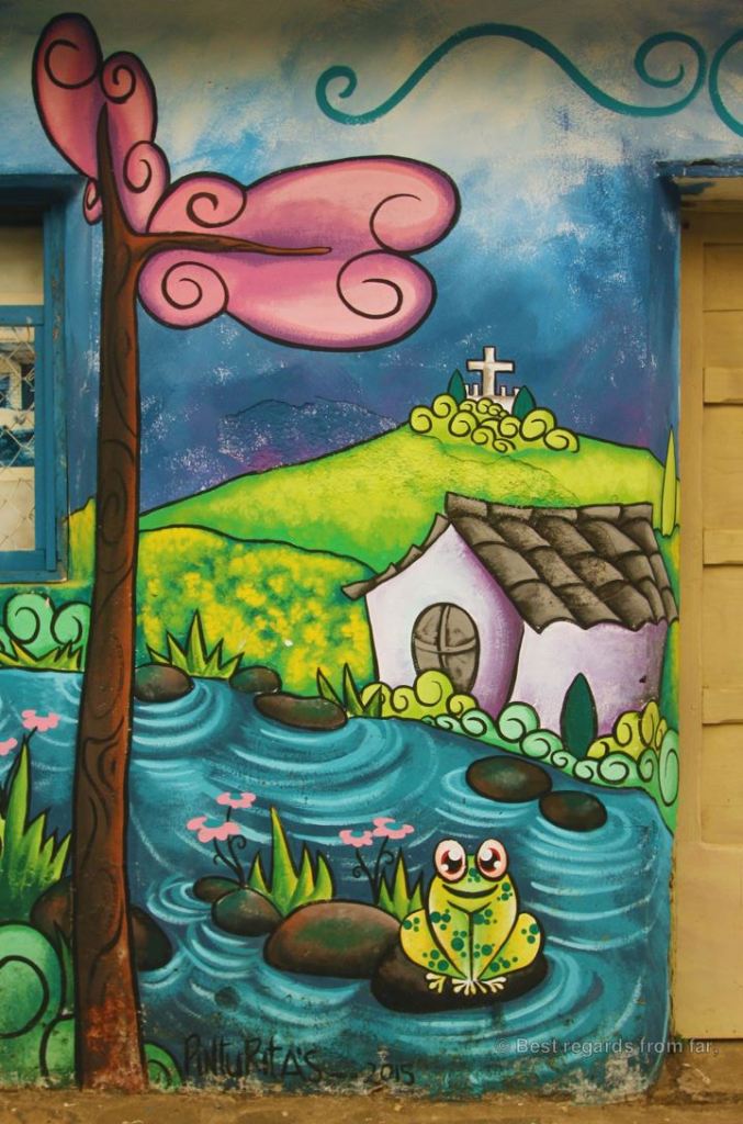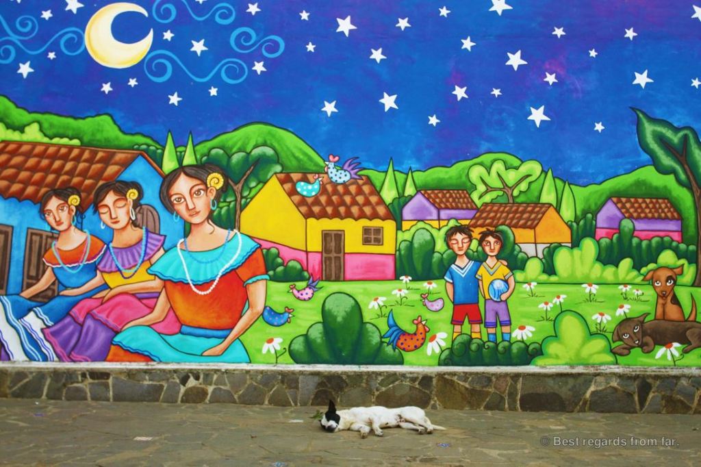 Beyond its wonderful murals, Ataco is a great hub to explore the Ruta de las Flores, enjoying delicious locally grown coffee and traditional pupusas while browsing through the colourful handicrafts that are widely displayed throughout the village. Easily accessible from San Salvador, Ataco is very popular amongst Salvadorians, especially on weekends when the town gets loud with music and locals visiting the food festival. Still, the black cat, pink owl and sleepy dog will need more to leave this lovely village!