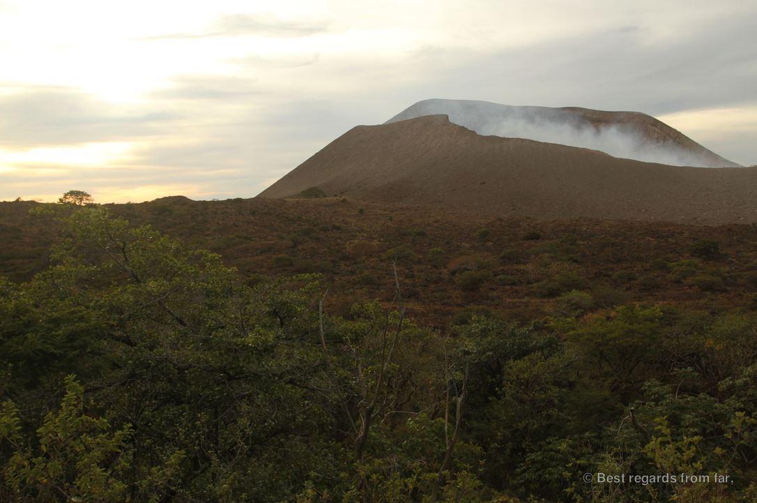 Peeping into Telica’s massive smokey crater, Nicaragua
