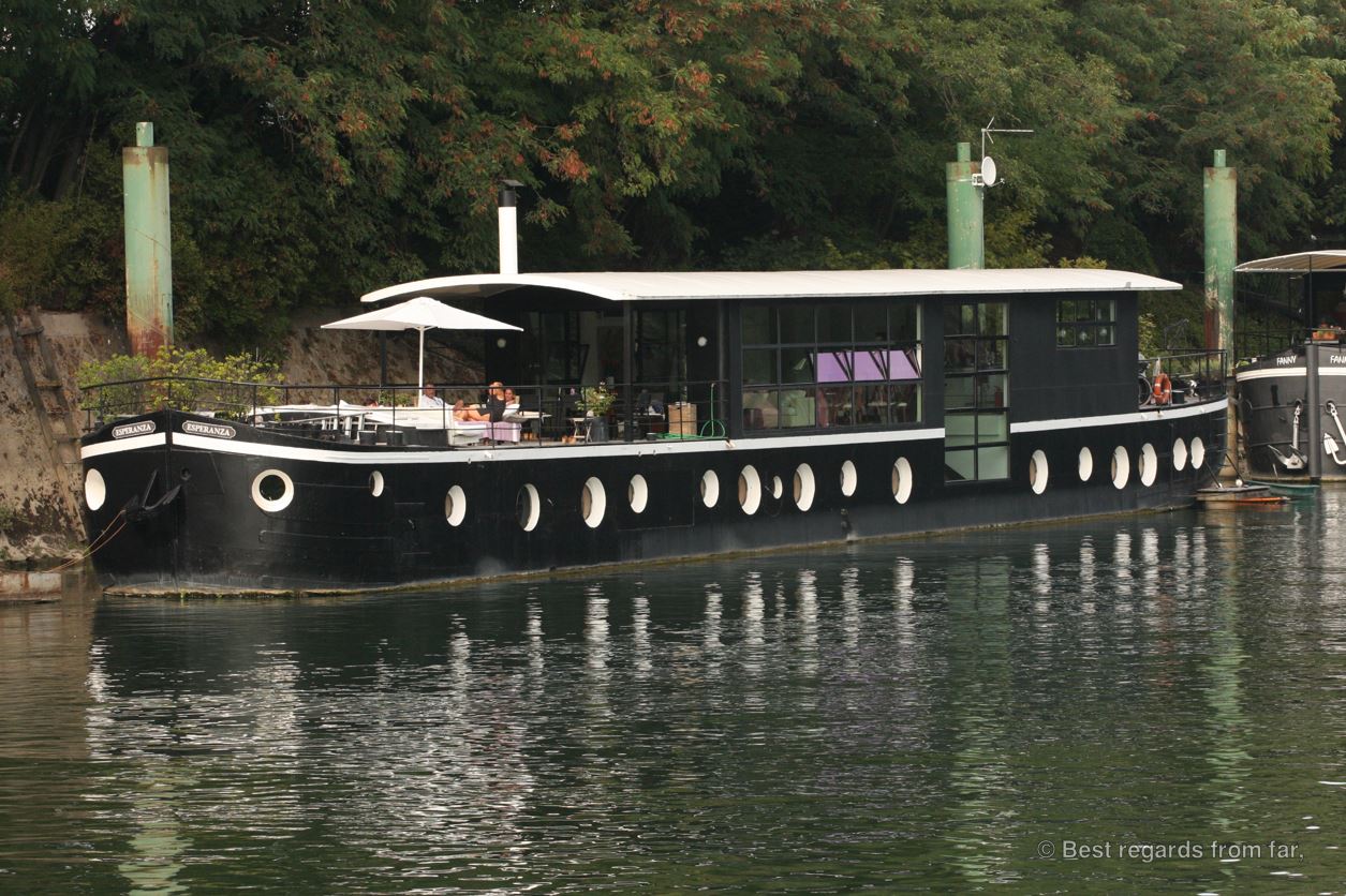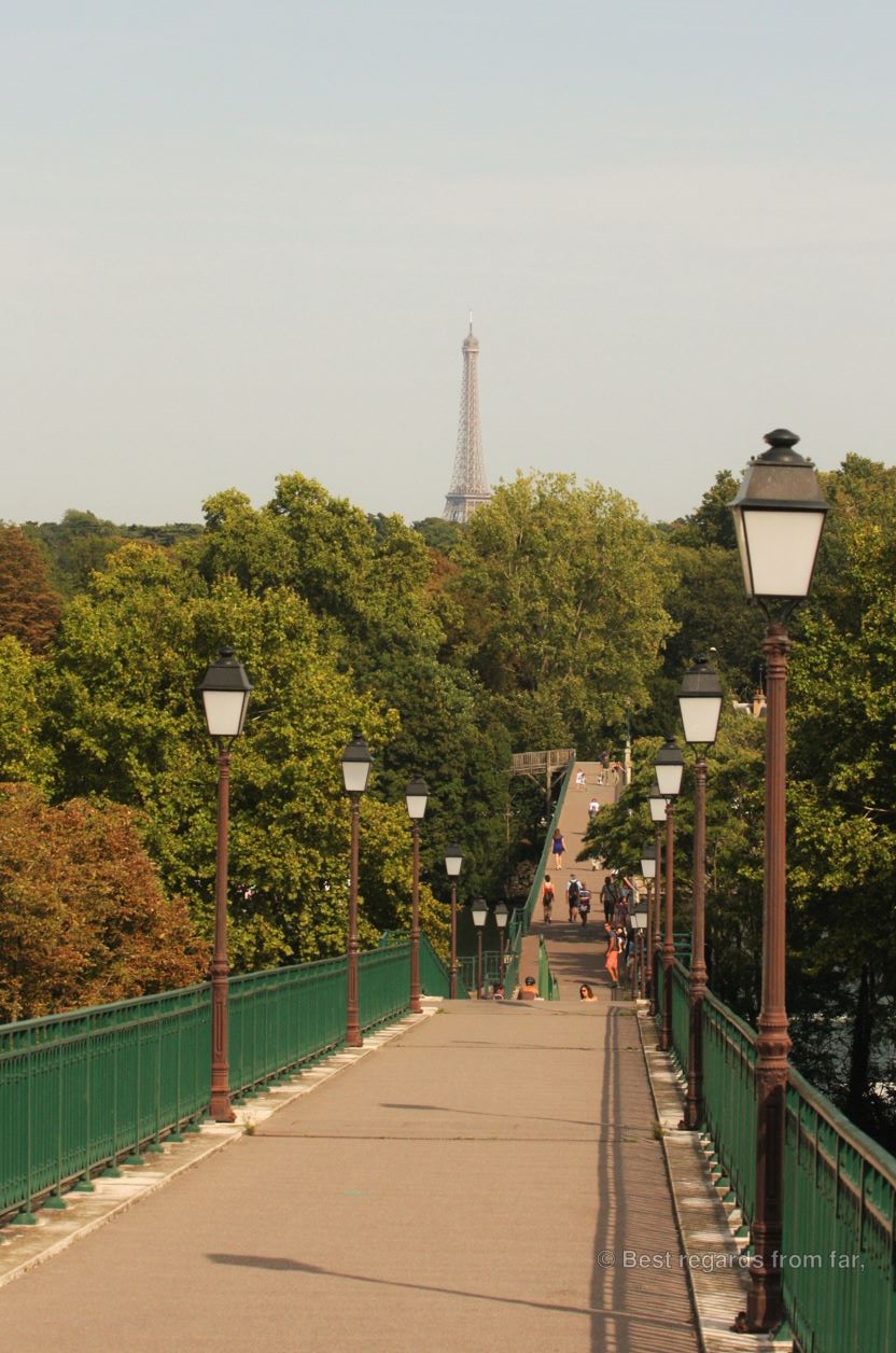 Happy I survived it, I soon find myself in the quiet Bois de Boulogne, overtaking runners on this Sunday morning. Past the Hippodrome de Longchamps, we follow the Seine River to the South lined up with péniche boats, turned into comfortable house boats. Crossing the footbridge of the Avre, we see youngsters making saltos from the decks into the river while other are water-skiing with the business towers of La Défense as a background. We quickly reach the Parc de Saint-Cloud, overlooking Paris. I curse the fact that we have to follow a long wide lane uphill through the beautiful park which later that day on our way back, will provide us with fantastic views on La Défense, Montmarte and the Eiffel Tower: highly rewarding and worth the effort.