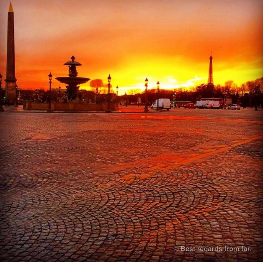 We start by biking one of the most beautiful parts of town, lined up with some of the landmarks of the city of lights: the towers of Notre Dame ; the former prison of La Conciergerie where Marie Antoinette was jailed before being executed in 1793 ; Le Louvre, one of the top museums in the world where tourists are already queuing ; the parc of Les Tuileries with many joggers running around ; the Musée d’Orsay, on the opposite bank of the Seine River ; the place de la Concorde with its Egyptian obelisk marking the foot of the Champs-Elysées. La plus belle avenue du monde (the world’s most beautiful avenue) is already busy, as well as the Arc de Triomphe roundabout.