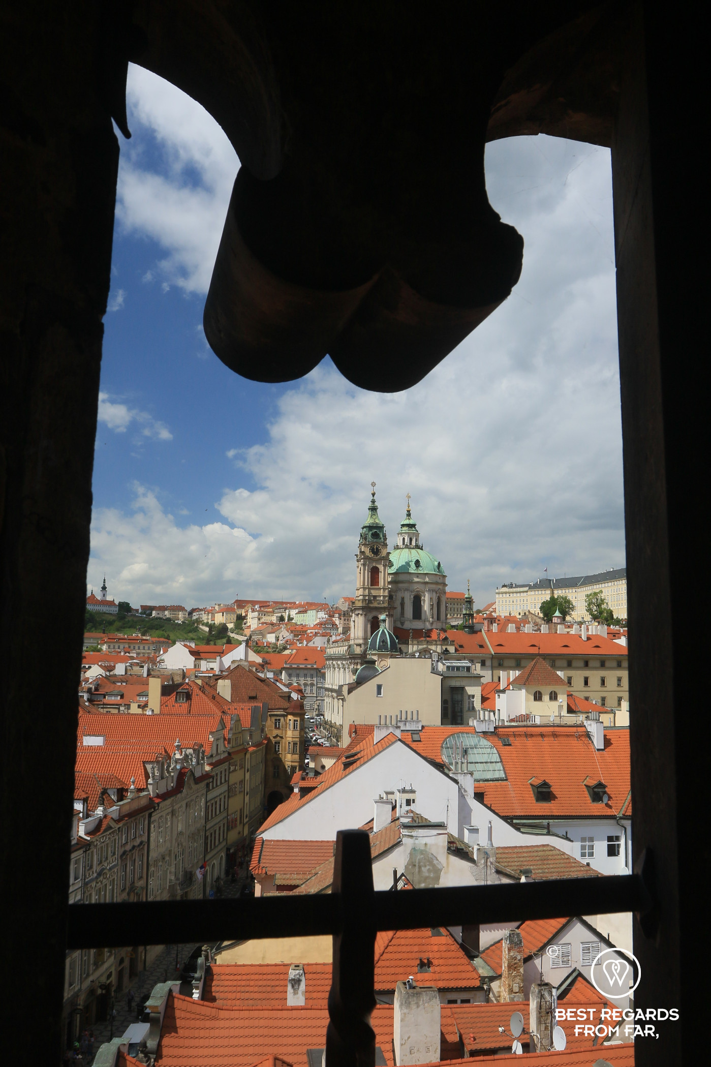 All the way up, after conquering 215 steps, another surprise awaits: with such a view, it is easy to understand why the communist regime used the belfry as an observation post of the State Security to survey the nearby foreign embassies (e.g. of the USA, Germany, and Great Britain) of the Malá Strana picturesque district between 1964 and 1989.