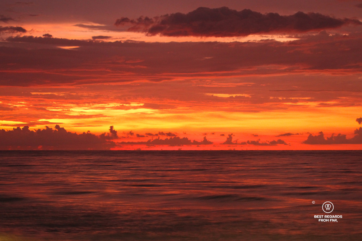 Orange and red sunset on the Caribbean Sea.